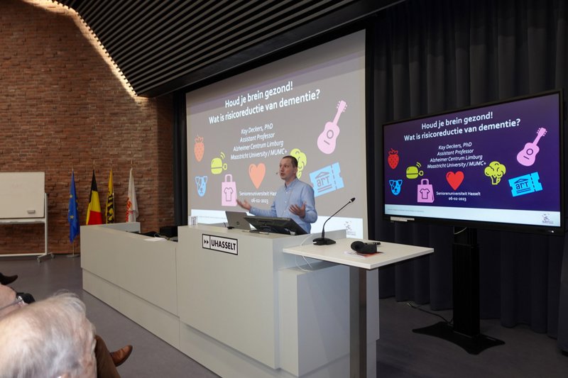 Het aantal mensen met dementie gaat de komende jaren flink toenemen. Er is helaas nog geen medicijn dat dementie kan genezen. Wel weten we inmiddels dat we de kans op dementie potentieel met 40% kunnen beïnvloeden door een (hersen)gezonde leefstijl te hanteren. Tijdens deze lezing vertelt Kay Deckers meer over wat u zélf kunt doen om de kans op dementie te verkleinen. Hij zal uitleggen wat dementie is en een korte geschiedenis schetsen van het onderzoeksveld naar risicoreductie van dementie. Hij vertelt wat risico- en beschermende factoren van dementie zijn en geeft u een inkijkje in (lopende) onderzoeksprojecten van het Alzheimer Centrum Limburg zoals de ‘we zijn zelf het medicijn’ campagne en de MijnBreincoach app.